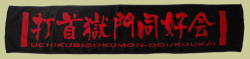 打首獄門同好会のバンド名をそのまんまバーンと横長の生地に敷き詰めたそのまんまなマフラータオル。黒字に赤文字がなんともキケンな香りを漂わせますが、